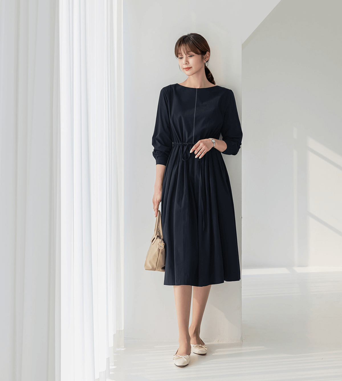 This beautifully designed stitch pleated dress exudes effortless sophistication with its refined silhouette and delicate contrast stitching. The flowing pleats add graceful movement, making it a versatile choice for any occasion.